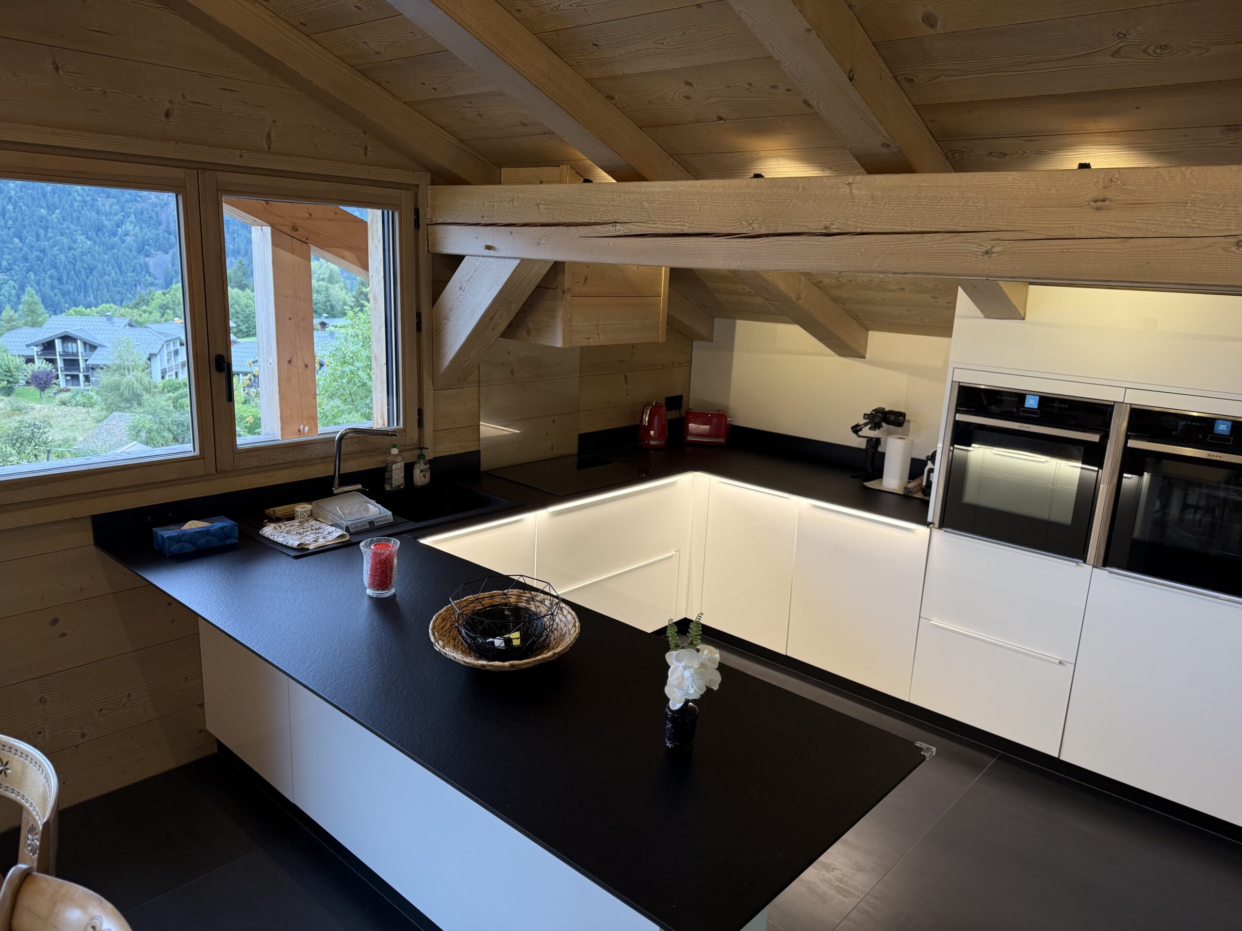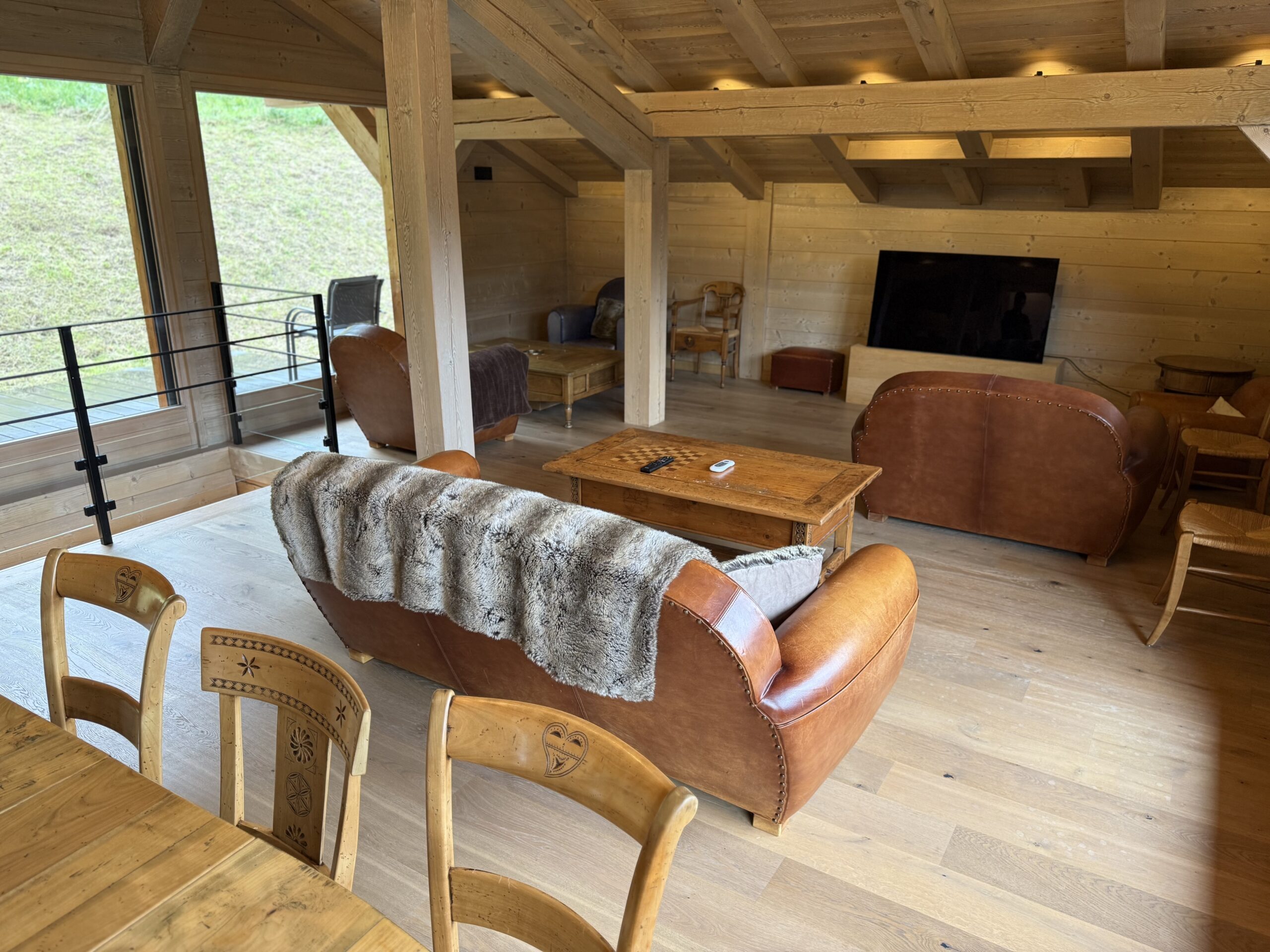 Ce magnifique chalet alpin est l’endroit idéal à louer pour se ressourcer en Haute-Savoie, en famille ou entre amis. D’une superficie de 250 m2, il peut accueillir très confortablement 14 personnes. La pièce principale très lumineuse est composée d’une cuisine ouverte donnant sur un salon/salle à manger à l’ambiance douce et chaleureuse. Vous trouverez au niveau des espaces de vie, la chambre Master avec sa salle de bain. Les 5 autres chambres se situent en rez-de-chaussée: 3 chambres avec salles de bains et 1 dortoir pouvant loger 6 enfants. Vous aurez le loisir de vous divertir grâce à un home-cinéma. Côté extérieur, vous pourrez profiter en toutes saisons de sa belle terrasse au soleil. Sa décoration boisée et sa vue exceptionnelle sur le Mont-Blanc viendront ravir avec harmonie votre séjour merveilleux dans ces lieux.
